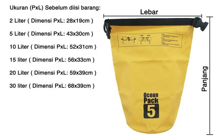 Temukan Ocean Pack Dry Bag, solusi andal untuk menjaga barang bawaan Anda tetap kering dan aman selama petualangan. Terbuat dari material PVC Waterproof berkualitas tinggi, tas ini dirancang untuk kondisi ekstrem dan tahan lama. Tersedia dalam berbagai pilihan kapasitas, mulai dari 2L hingga 30L, untuk memenuhi segala kebutuhan Anda.