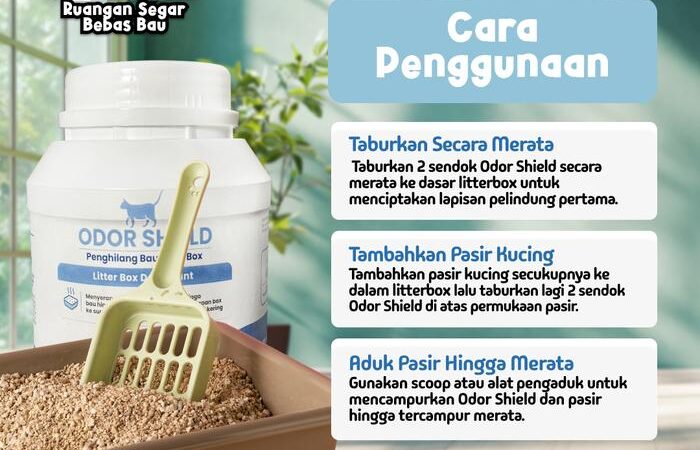| Aman untuk Hewan & Keluarga | 2. Taburkan 2 sendok Odor Shield di dasar box |