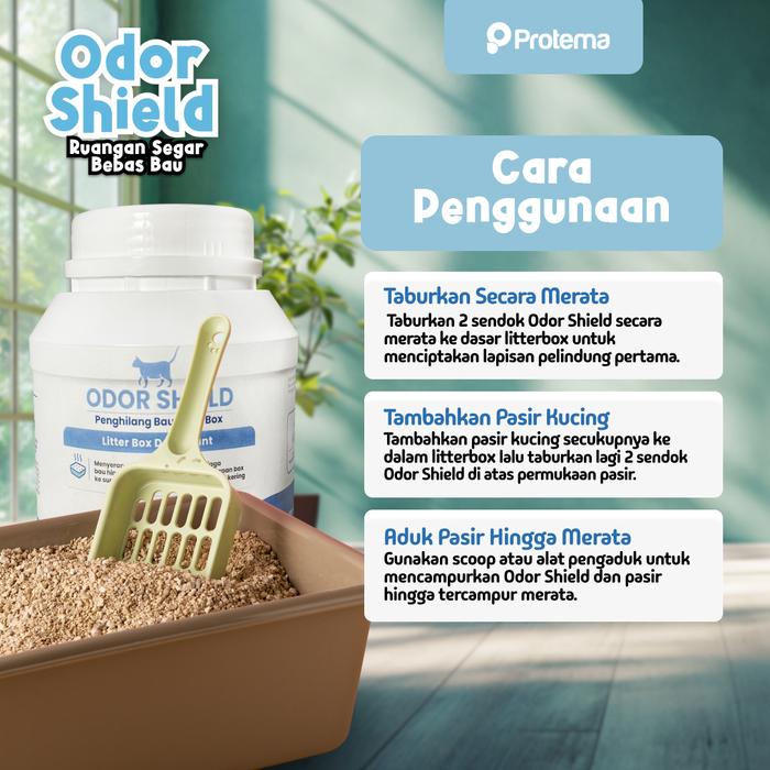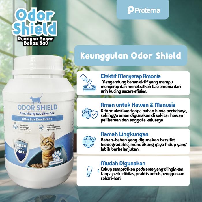 Hilangkan bau menyengat dengan mudah dan jaga kebersihan area kucing kesayangan Anda. Odor Shield by Protema adalah solusi ampuh untuk menetralisir bau tak sedap dari urin dan feses kucing, membuat rumah Anda lebih segar dan nyaman.