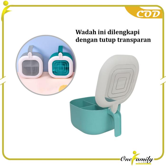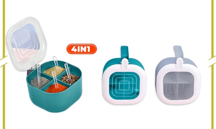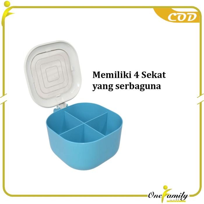 | 4 Kompartemen + Sendok | 4 wadah terpisah untuk menyimpan garam, gula, merica, dan bumbu lainnya. Dilengkapi 4 sendok. |