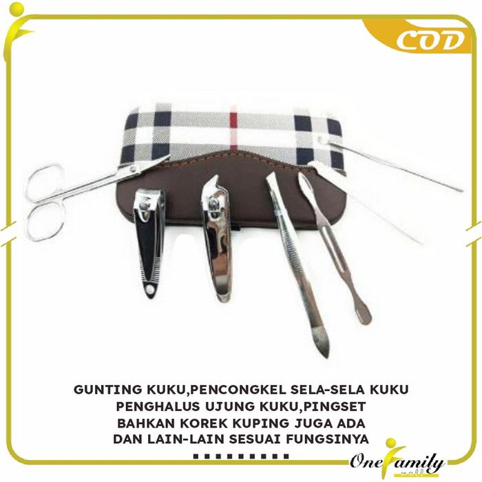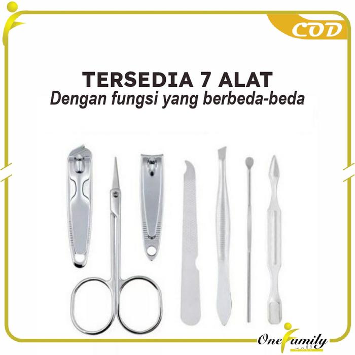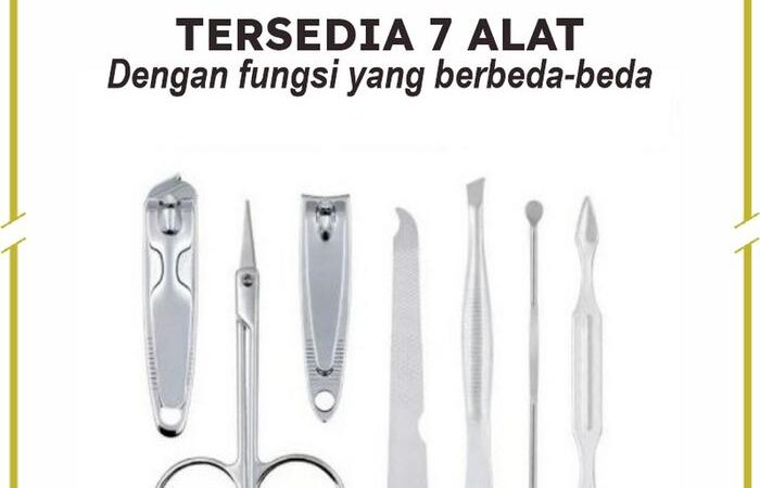 | Isi Lengkap 7 Alat | Gunting kuku, kutek penjepit, penjepit alis/bulu, penusuk kutikula, pendorong kutikula, pembersih kotoran kuku, dan pengorek telinga. Semua terbuat dari Stainless Steel anti-karat dan tahan lama. |