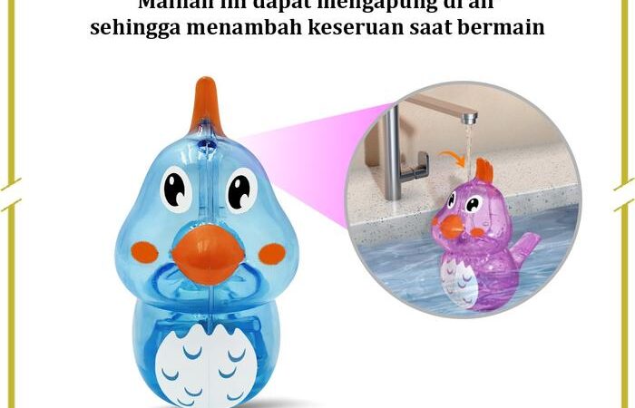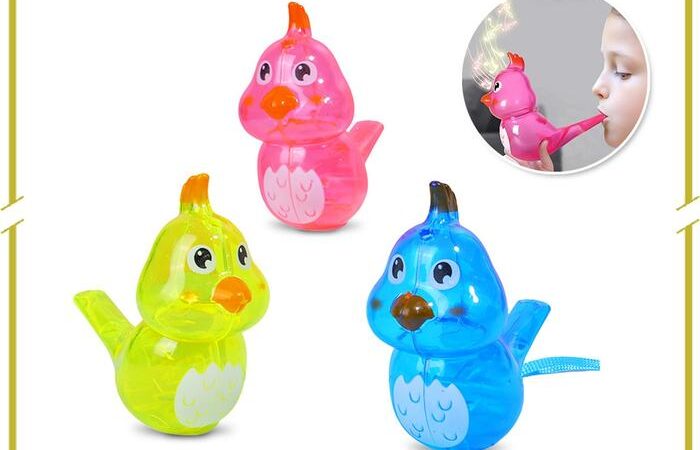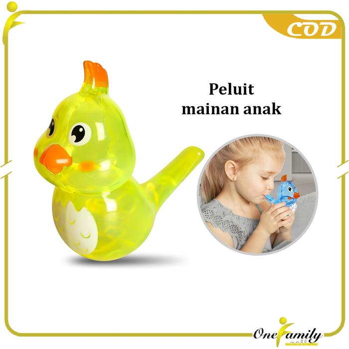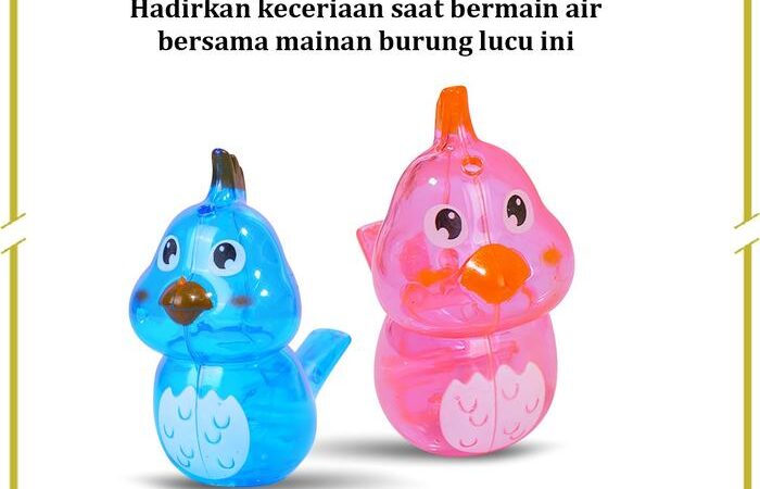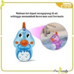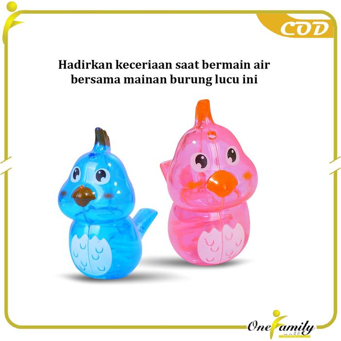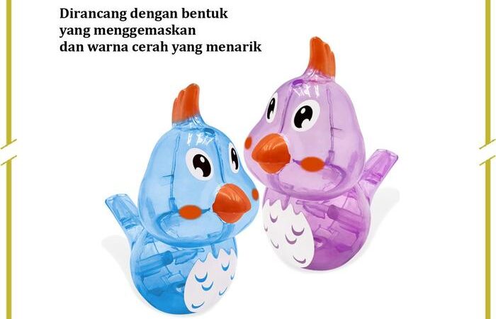 Dilengkapi dengan tali gantung sepanjang 44 cm yang dapat dikaitkan dengan mudah, sehingga mainan tidak mudah hilang atau tenggelam di kolam. Cara memainkannya sangat sederhana: isi tubuh burung dengan air, lalu tiup dari bagian ekornya. Mainan akan mengeluarkan suara siulan nyaring yang menyerupai kicauan burung, melatih kemampuan motorik dan pendengaran anak.