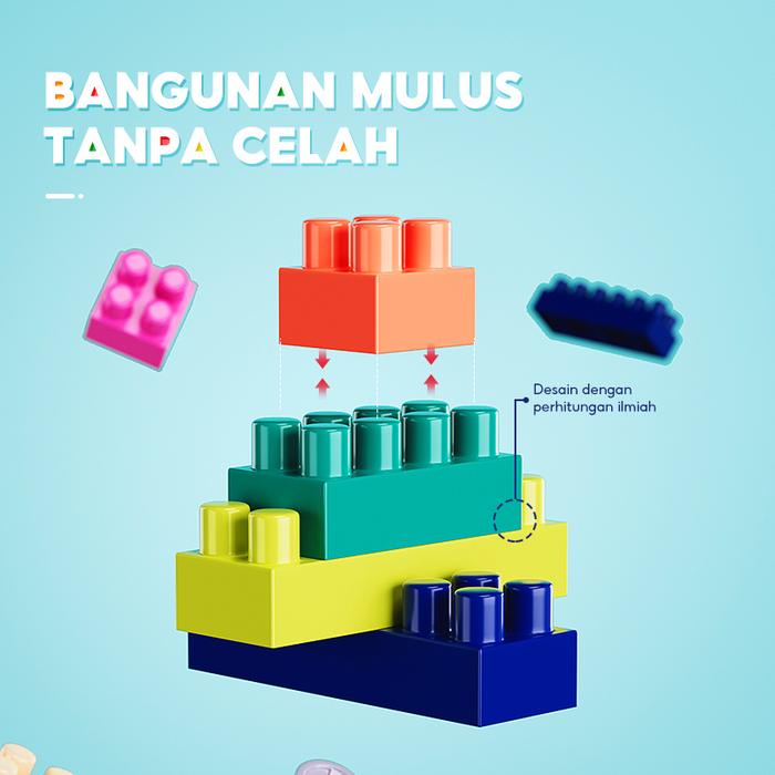 Mainan ini sangat aman untuk buah hati Anda. Partikelnya dirancang berukuran cukup besar untuk mencegah risiko tertelan. Terbuat dari material ABS pilihan yang kuat, tahan lama, serta bebas dari bahan beracun dan bau tidak sedap. Kembangkan 3 kemampuan utama anak: kemampuan motorik langsung, kemampuan membangun, serta pengenalan warna dan estetika.