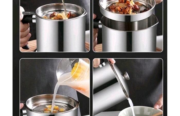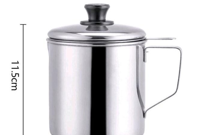 Tingkatkan efisiensi dan kebersihan proses memasak Anda dengan Oil Pot Saringan Stainless Steel berkapasitas 1,3 liter. Dirancang khusus untuk memudahkan Anda menyaring, menyimpan, dan menuang kembali minyak goreng bekas pakai dengan lebih aman dan higienis.