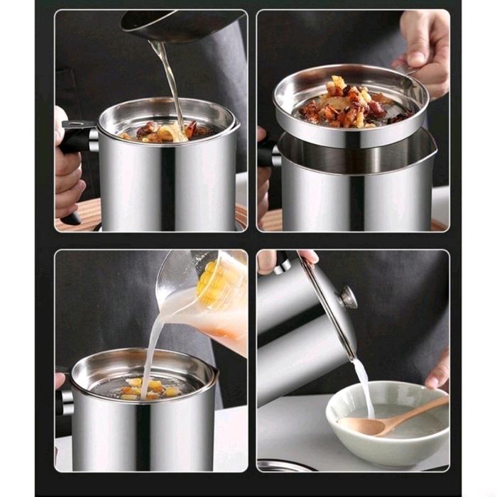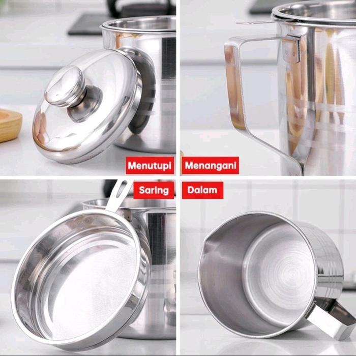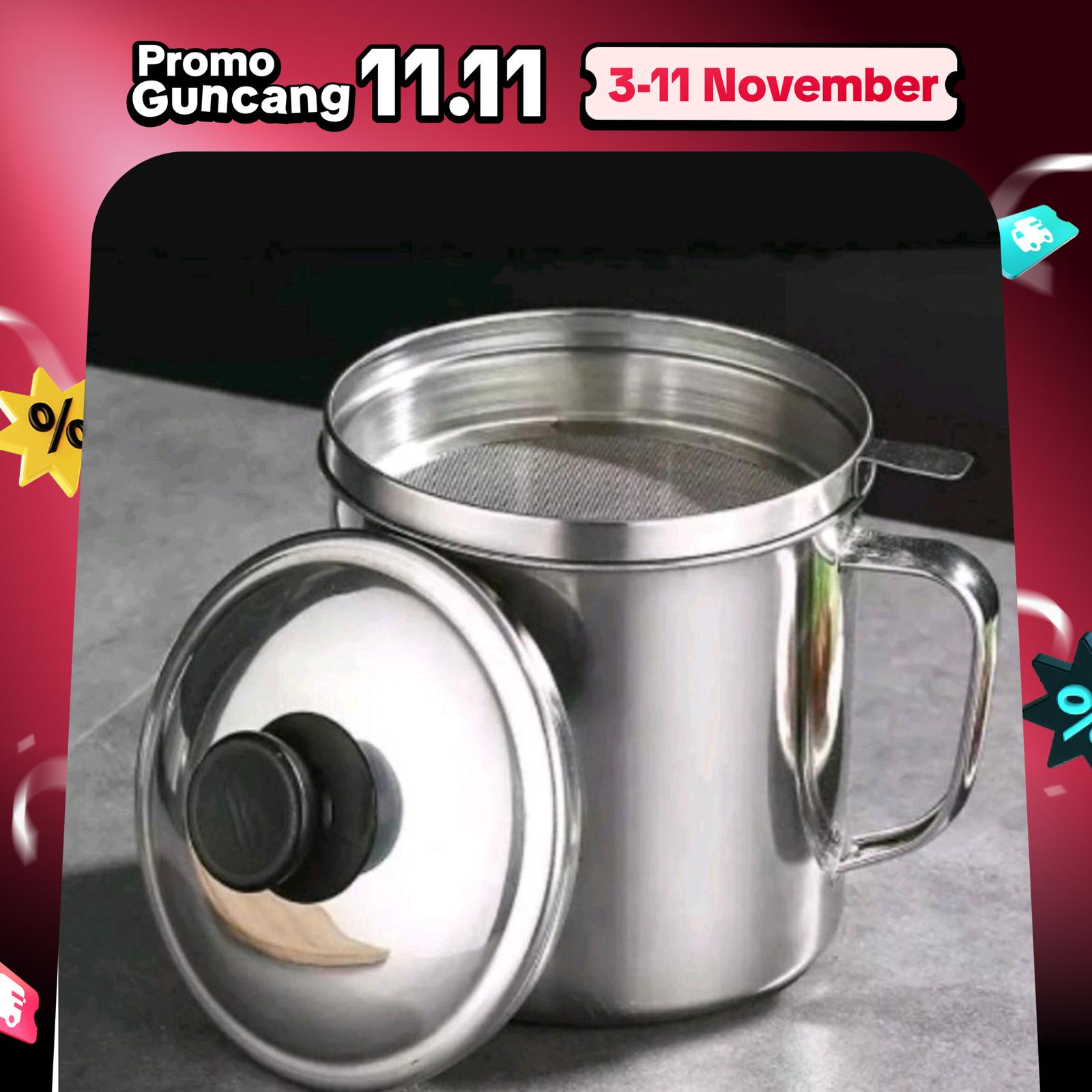 Tingkatkan efisiensi dan kebersihan proses memasak Anda dengan Oil Pot Saringan Stainless Steel berkapasitas 1,3 liter. Dirancang khusus untuk memudahkan Anda menyaring, menyimpan, dan menuang kembali minyak goreng bekas pakai dengan lebih aman dan higienis.