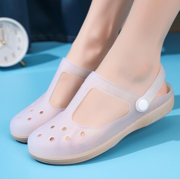 - Jelly: Material berbahan dasar karet atau silikon yang transparan dan lentur, sering digunakan untuk alas kaki karena mudah dibersihkan dan tampilannya yang modern.