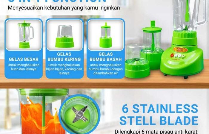 | Fitur | 2 Kecepatan, Penghancur Es, Cocok untuk Makanan Bayi |