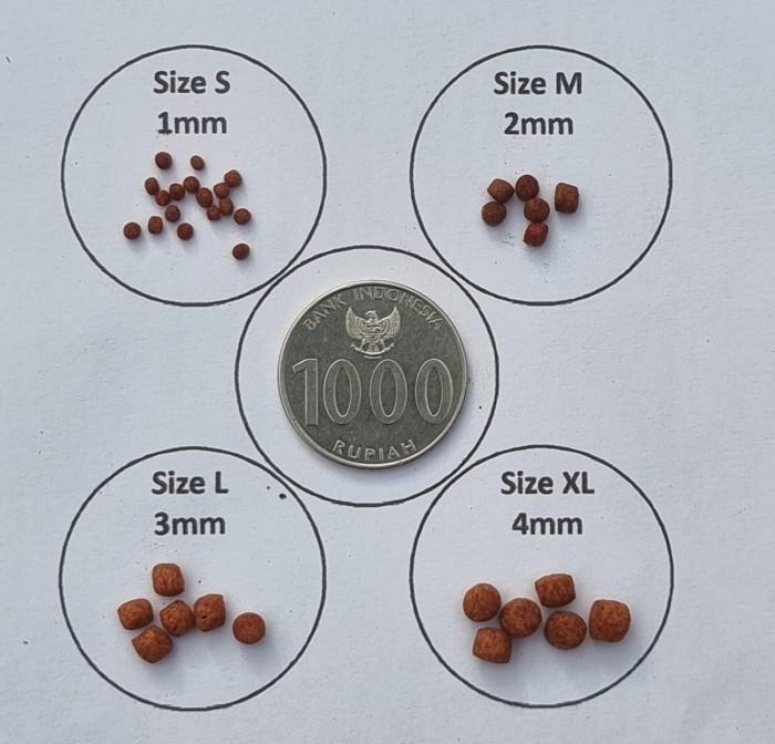 PENTING: Selalu cantumkan ukuran (S, M, L, XL) yang Anda inginkan saat pemesanan. Jika tidak dicantumkan, kami akan mengirimkan ukuran secara acak (random). Berikan pakan secukupnya sesuai kebutuhan ikan.