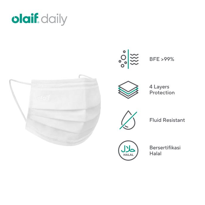 Lindungi diri Anda dari polusi, bakteri, dan virus berbahaya dengan Olaif 4 Ply Surgical Face Mask. Masker ini dirancang dengan 4 lapis proteksi tinggi, cocok untuk tindakan bedah (surgical), medis (medical), maupun aktivitas sehari-hari (daily).