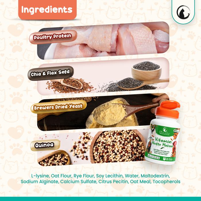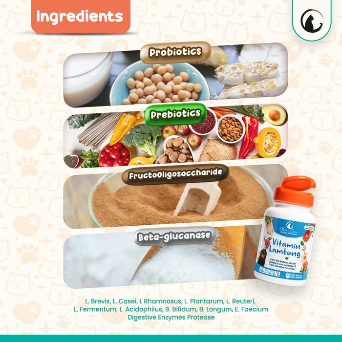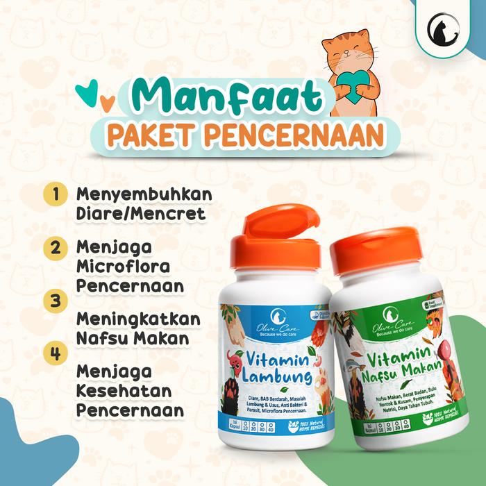 | Kombinasi 2 Vitamin | 1. Vitamin Nafsu Makan: Atasi bulu kusam, berat badan rendah, dan imunitas lemah. 2. Vitamin Lambung: Sembuhkan diare, pup berdarah, radang usus, dan gangguan pencernaan. |