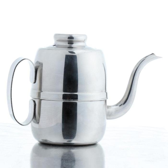 Dibuat dari stainless steel berkualitas tinggi, teko ini tidak hanya tahan lama tetapi juga memiliki pemanasan yang cepat dan merata. Desainnya yang ringkas dan ringan membuatnya mudah dibawa dalam perjalanan, sementara gagangnya yang tebal tetap sejuk dan nyaman digenggam. Fitur keamanan seperti lubang uap dan tutup yang rapat menjamin proses penyeduhan yang aman dan terkendali.