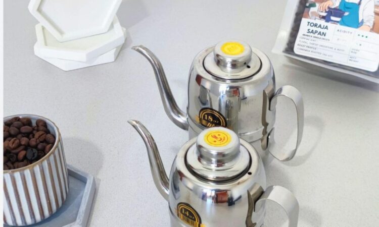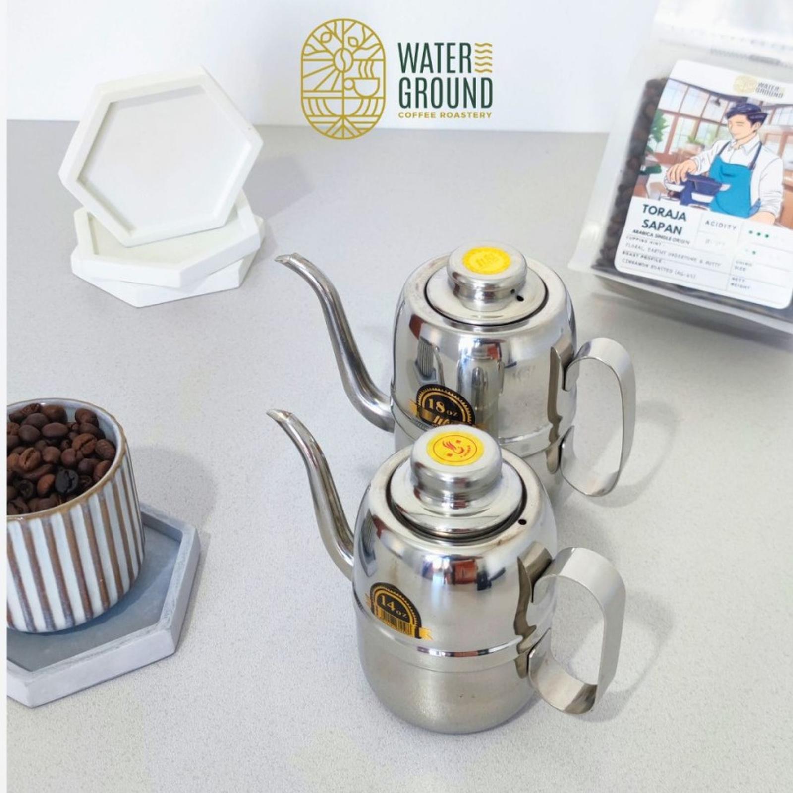 • Gooseneck (Leher Angsa): Bentuk cerukung pada teko yang menyerupai leher angsa. Fungsinya adalah untuk memberikan aliran air yang lambat, tipis, stabil, dan mudah dikendalikan, sehingga sangat ideal untuk teknik pour over.