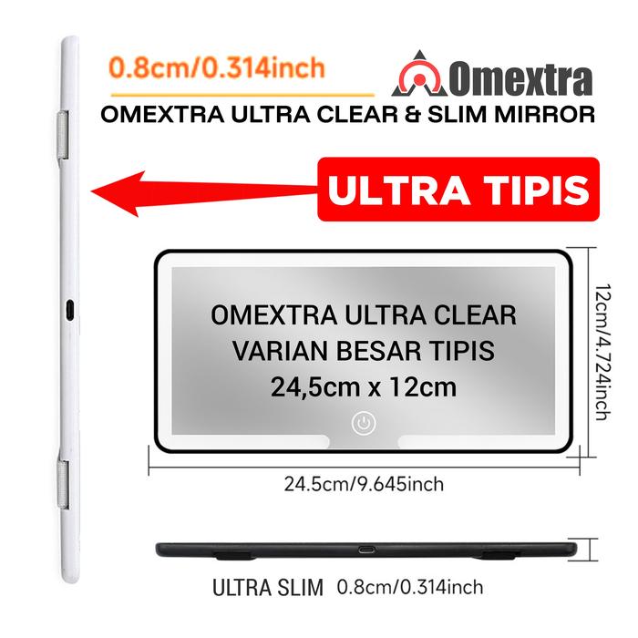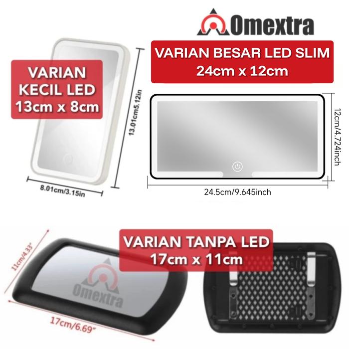 | Besar LED (Ultra Tipis) | Cermin besar, ultra tipis, lampu LED | Hitam, Putih | Kaca lebih jernih, desain upgrade |