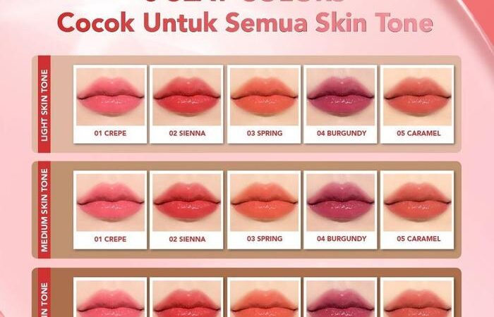 - Undertone: Warna dasar yang mempengaruhi bagaimana sebuah warna lipstik terlihat pada bibir, biasanya dikategorikan sebagai Warm (hangat), Cool (dingin), atau Neutral.