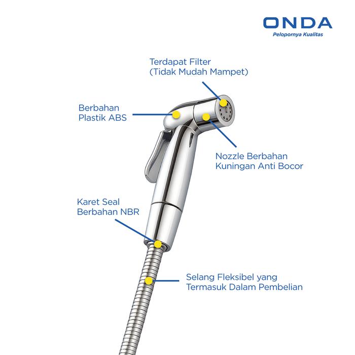Tingkatkan standar kebersihan dan kenyamanan di kamar mandi Anda dengan ONDA Jet Shower S 88 CCS. Hadir dengan semprotan air yang halus, presisi, dan anti bocor, produk ini dirancang untuk memberikan pengalaman bersih yang optimal setelah menggunakan toilet. Terbuat dari material pilihan, ONDA S 88 CCS adalah investasi jangka panjang untuk kebersihan yang lebih sehat dan praktis, cocok untuk rumah, apartemen, hotel, dan kantor.