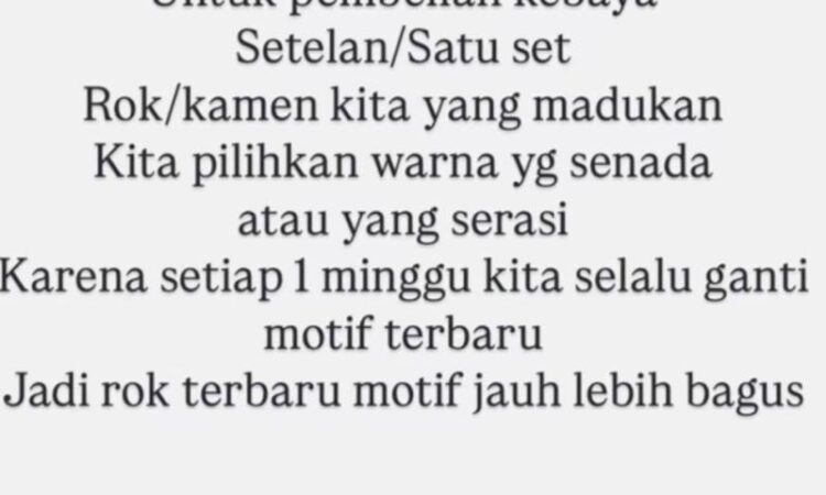 | Warna Rok Bawah | Dikirim secara RANDOM, disesuaikan dengan selendang dan dipilihkan warna terbaik |