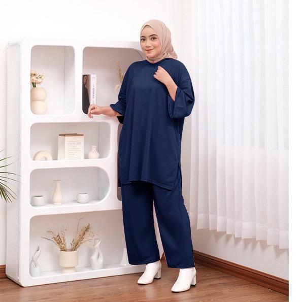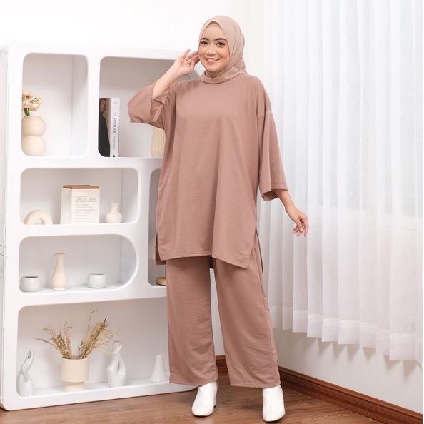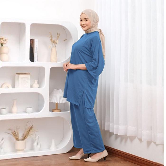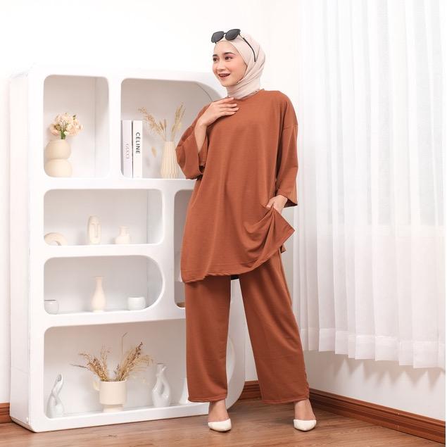 Celana desain jumbo dengan karet keliling di pinggang memberikan feel yang relaxed dan bebas bergerak. Karet yang elastis memastikan pinggang dapat menyesuaikan berbagai ukuran tubuh dengan sempurna. Stelan ini adalah solusi fashion praktis dan trendy untuk tampilan casual sehari-hari.