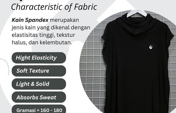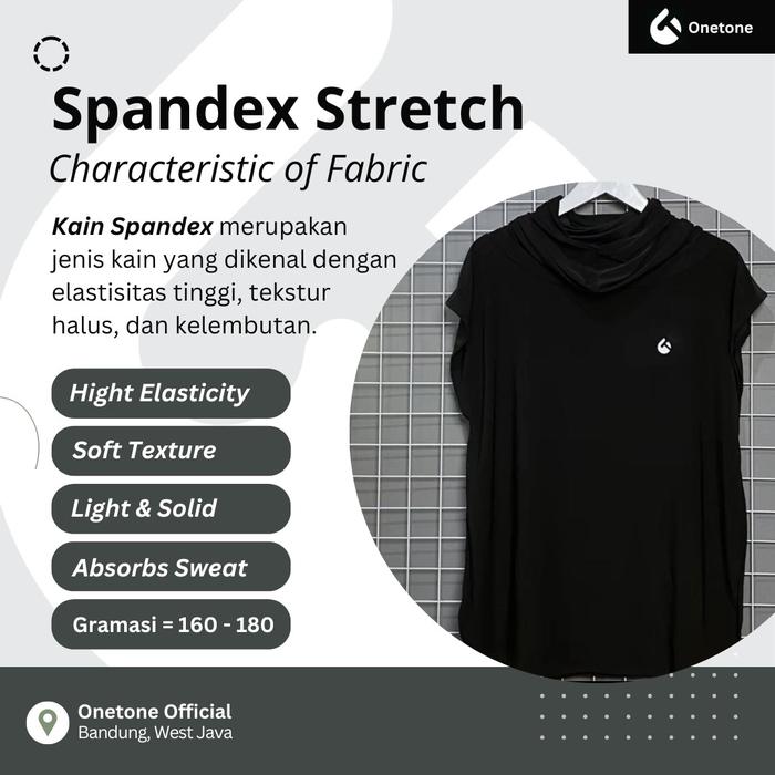 - Spandek Premium Grade A: Jenis bahan kain berkualitas tinggi dengan komposisi 80% Polyester dan 20% Spandex. Kualitas Grade A menunjukkan bahwa bahan memiliki elastisitas yang sangat baik, daya serap keringat yang optimal, dan ketahanan yang lebih unggul dibandingkan bahan dengan grade lebih rendah.
