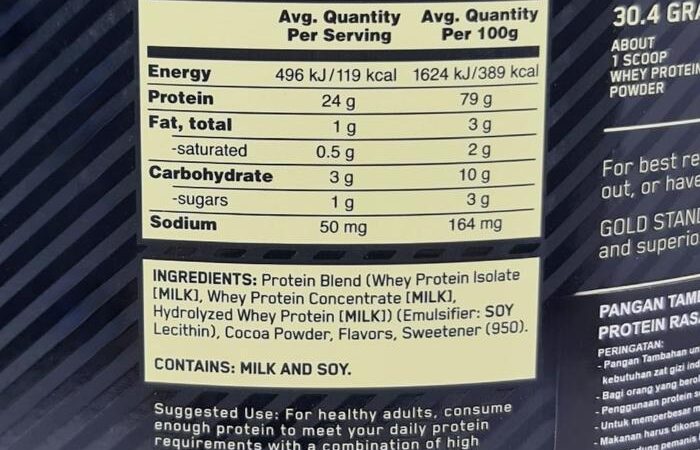 - Whey Protein Isolate: Bentuk protein whey paling murni dengan kadar protein mencapai 90% dan hampir bebas laktosa serta lemak, cocok untuk mereka yang ingin membangun otot tanpa menambah kalori berlebih.