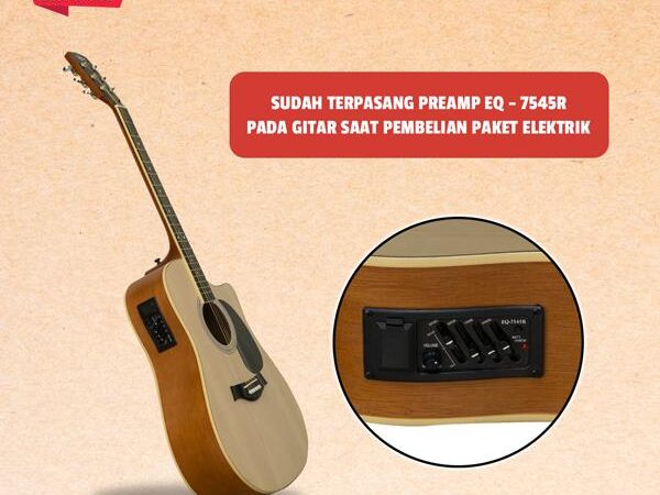 | Paket Promo Elektrik | 1x Gitar SC10, 1x Kunci L, 1x Pick, Sticker ORCA, 1x Preamp 7545R (terpasang), 1x Kabel Jack | Siap dipakai untuk pertunjukan atau rekaman |