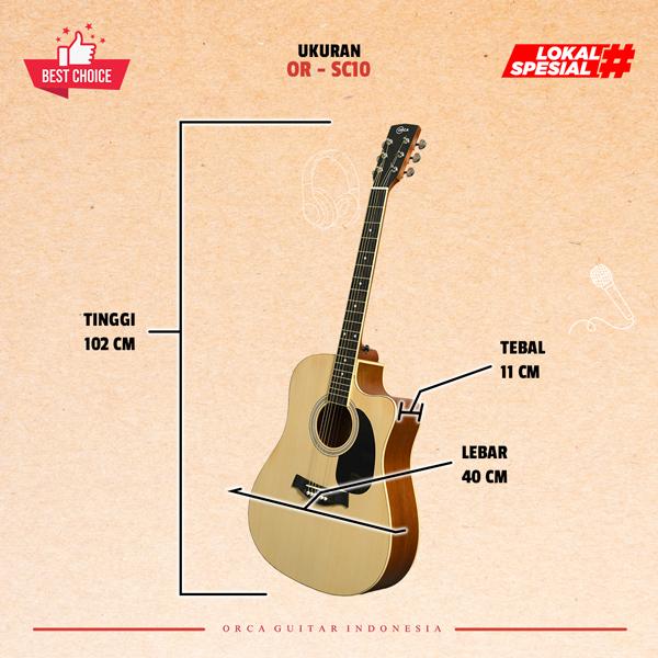 | Paket Lengkap | 1x Gitar SC10, 1x Softcase Eksklusif, 1x Capo, 1x Kunci L, 1x Pick, Sticker ORCA | Perlengkapan lengkap untuk pemula |