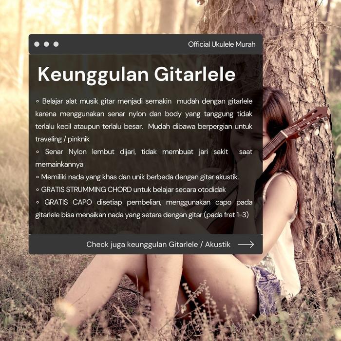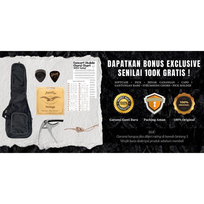 ✅ Bonus: Tas, pick holder, gantungan ukulele, strumming patterns, chord chart, dan elektrik tuner (jika beli paket preamp).