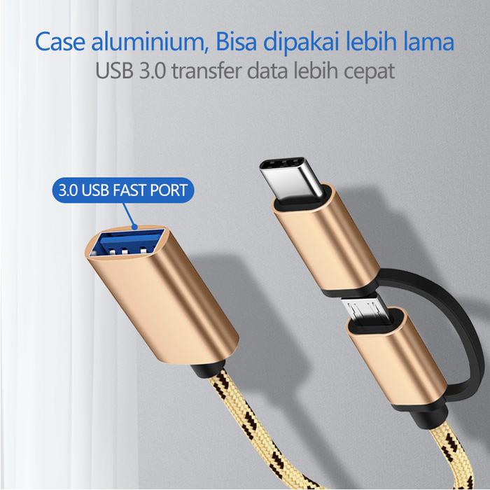 Adapter ini menggabungkan dua konektor paling populer, Micro-USB dan USB Type-C, dalam satu perangkat yang praktis. Cukup colokkan ke ponsel atau tablet Anda, dan secara instan Anda dapat mengakses dan mentransfer data dari flashdisk USB 3.0 dengan kecepatan tinggi. Selain itu, transformasikan perangkat mobile Anda menjadi workstation mini dengan menghubungkan mouse atau keyboard eksternal untuk produktivitas yang lebih besar. Sangat cocok untuk presentasi, bekerja di perjalanan, atau sekadar mengelola file dengan mudah.