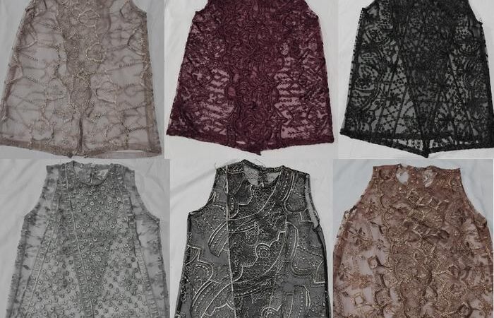 • Organza: Jenis kain tipis, ringan, dan berkilau yang terbuat dari sutra atau serat sintetis. Dikenal dengan teksturnya yang halus, kaku, dan transparan, memberikan kesan mewah dan elegan.