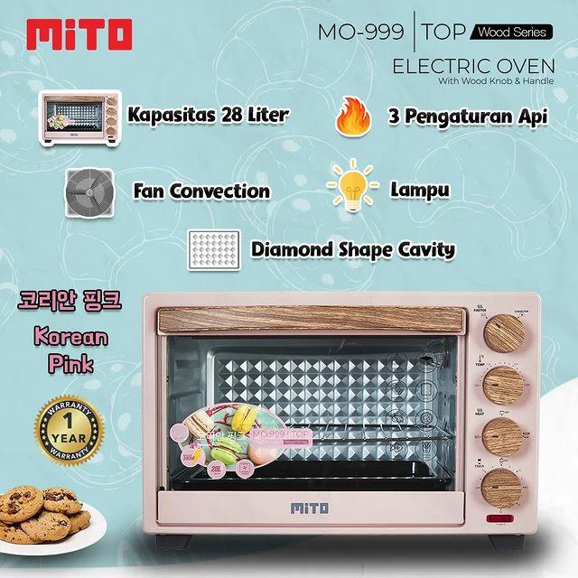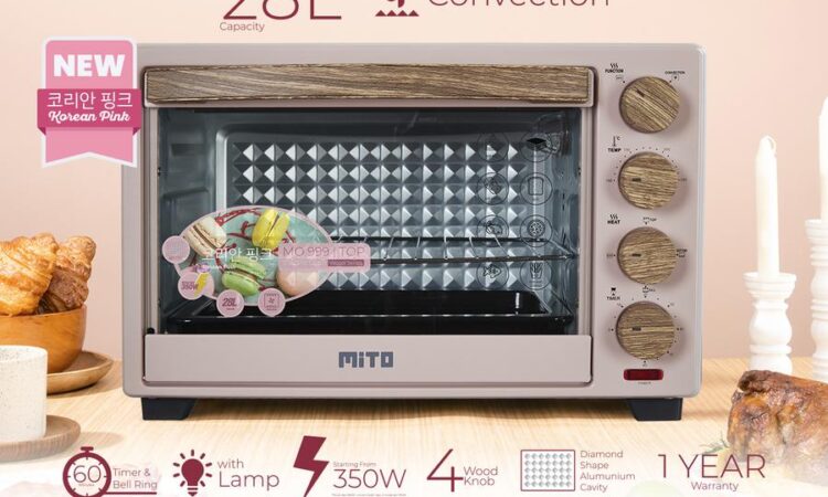 - Tombol: Convection (blower), pengaturan api atas-bawah, suhu, timer.