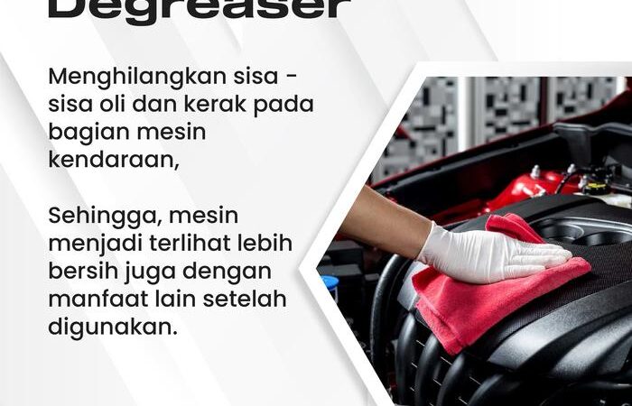 - Engine Degreaser: Cairan pembersih khusus yang diformulasikan untuk mengangkat dan melarutkan lemak, minyak, oli, dan kotoran berminyak lainnya yang menempel pada mesin kendaraan.