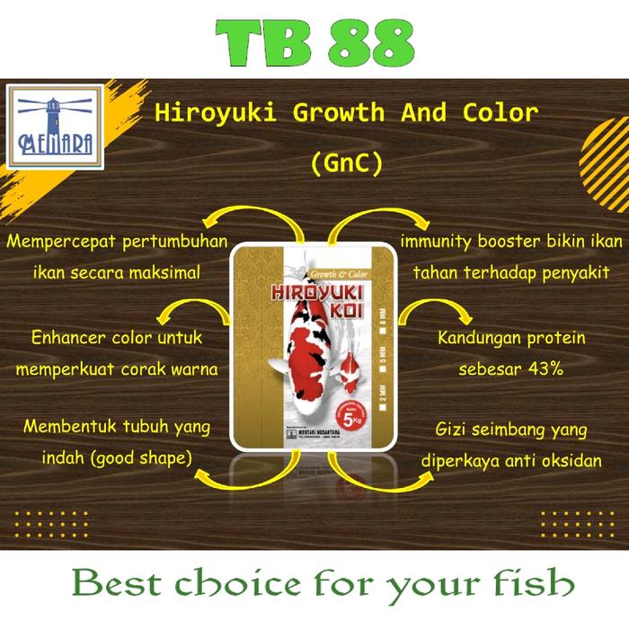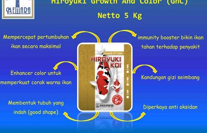 Tingkatkan keindahan dan vitalitas ikan koi dan koki Anda dengan Pakan Hiroyuki Growth and Colour. Formula lokal dengan kualitas rasa import ini dirancang khusus untuk mendukung pertumbuhan optimal dan memperkuat warna alami ikan kesayangan Anda.