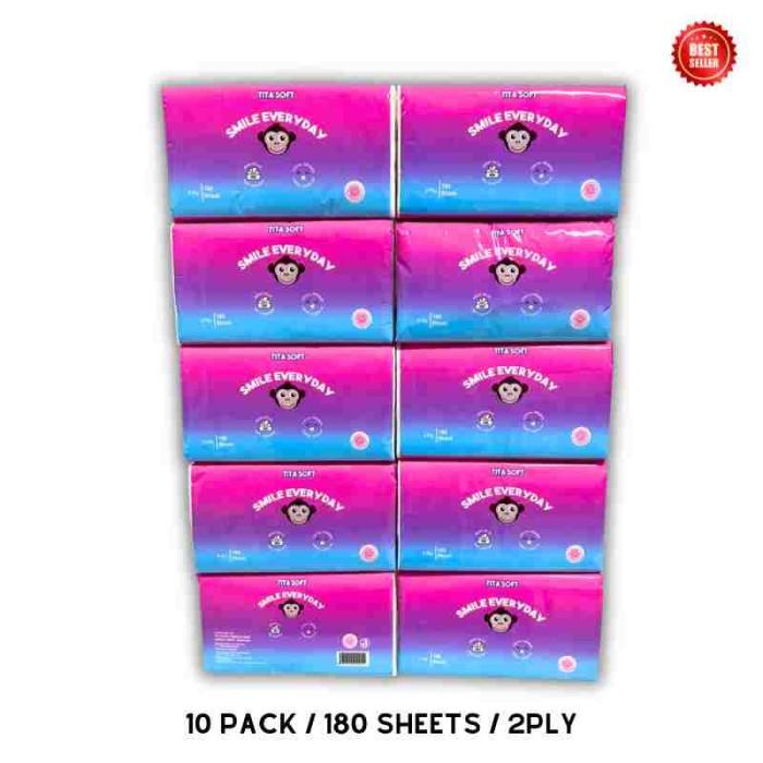 Dapatkan perlindungan dan kenyamanan maksimal dengan Paket 10 Tisu Murah Tita Soft Facial Tissue 180 Sheets. Setiap paket berisi 10 box tisu wajah yang sangat ekonomis dan praktis untuk kebutuhan harian Anda.