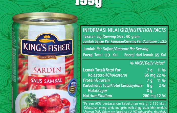 Rasakan kelezatan sarden saus sambal yang autentik dengan promo spesial ini! Dapatkan 3 kaleng King’s Fisher Sarden Mini rasa saus sambal 155g hanya dengan harga 2 kaleng. Cita rasanya begitu lezat, pedas, dan gurih dari racikan bumbu alami seperti cabe segar (7%), bawang merah, dan bawang putih. Terbuat dari ikan sarden pilihan berkualitas tinggi (55%) yang telah melalui proses steam, goreng, dan retort untuk memastikan keamanan dan keutuhan rasa. Produk ini siap santap langsung tanpa perlu tambahan bumbu, praktis untuk lauk sehari-hari maupun stok darurat.