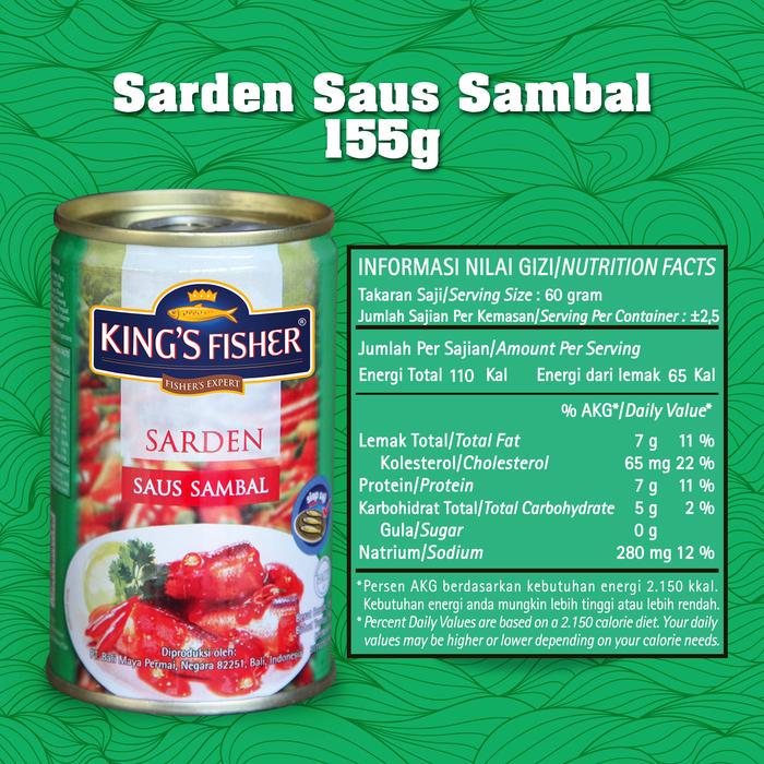 Rasakan kelezatan sarden saus sambal yang autentik dengan promo spesial ini! Dapatkan 3 kaleng King’s Fisher Sarden Mini rasa saus sambal 155g hanya dengan harga 2 kaleng. Cita rasanya begitu lezat, pedas, dan gurih dari racikan bumbu alami seperti cabe segar (7%), bawang merah, dan bawang putih. Terbuat dari ikan sarden pilihan berkualitas tinggi (55%) yang telah melalui proses steam, goreng, dan retort untuk memastikan keamanan dan keutuhan rasa. Produk ini siap santap langsung tanpa perlu tambahan bumbu, praktis untuk lauk sehari-hari maupun stok darurat.