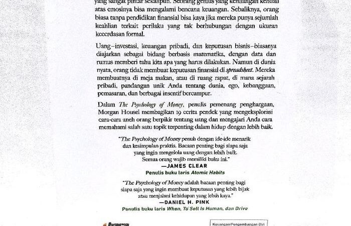 The Psychology of MoneyPahami pola pikir dalam mengelola keuangan. Buku ini bukan tentang rumus investasi, tapi tentang perilaku bijak terhadap uang.