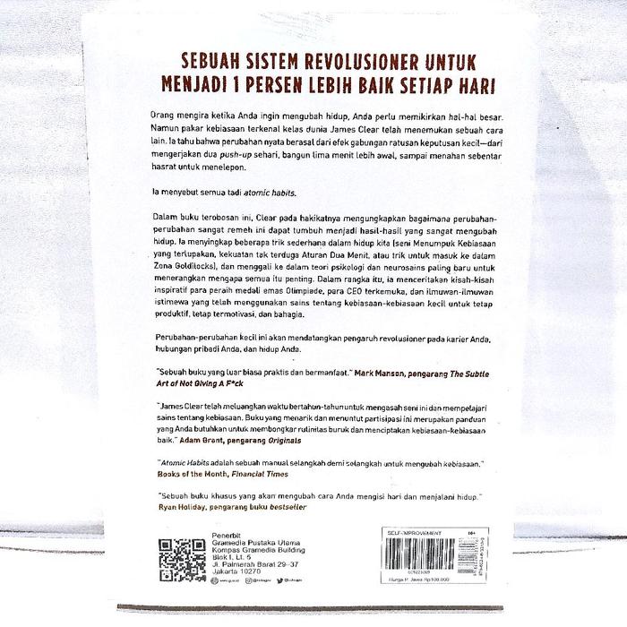 Atomic HabitsUbah kebiasaan buruk menjadi rutinitas produktif dengan metode bertahap yang terbukti efektif. Raih versi terbaik dirimu.
