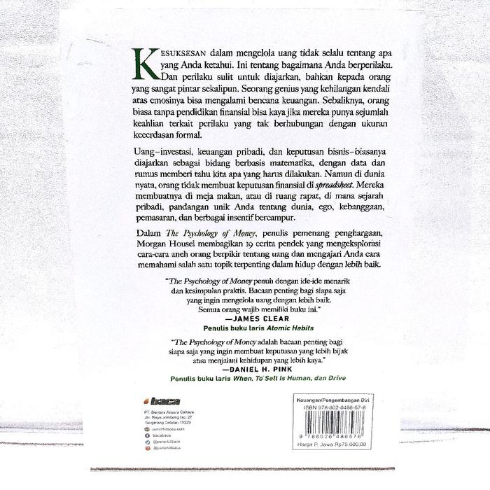 The Psychology of MoneyPahami pola pikir dalam mengelola keuangan. Buku ini bukan tentang rumus investasi, tapi tentang perilaku bijak terhadap uang.