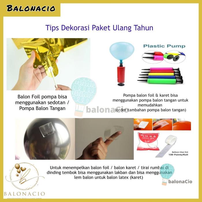 - Foil Star/Number: Balon berbahan foil (metalik) dengan bentuk bintang/angka, lebih tahan lama dan mengkilap.