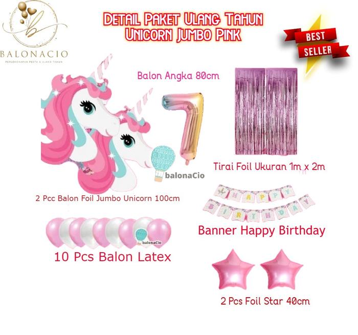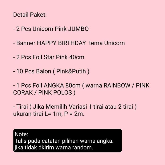 | Balon Angka Umur | Spesifikasi sesuai pilihan (rainbow/pink) |