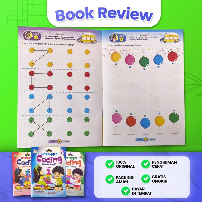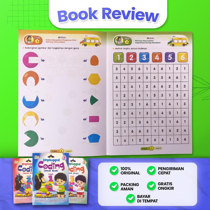 Membangun pondasi logika dan pemikiran kritis anak sejak dini tanpa perlu layar! Paket buku unplugged coding ini dirancang khusus untuk anak usia dini agar dapat memahami konsep-konsep dasar pemrograman dengan cara yang menyenangkan dan interaktif.