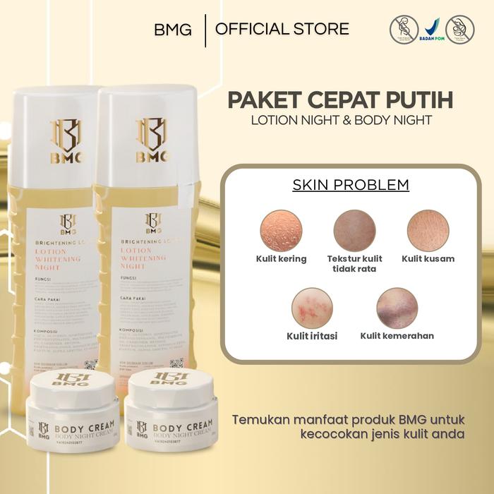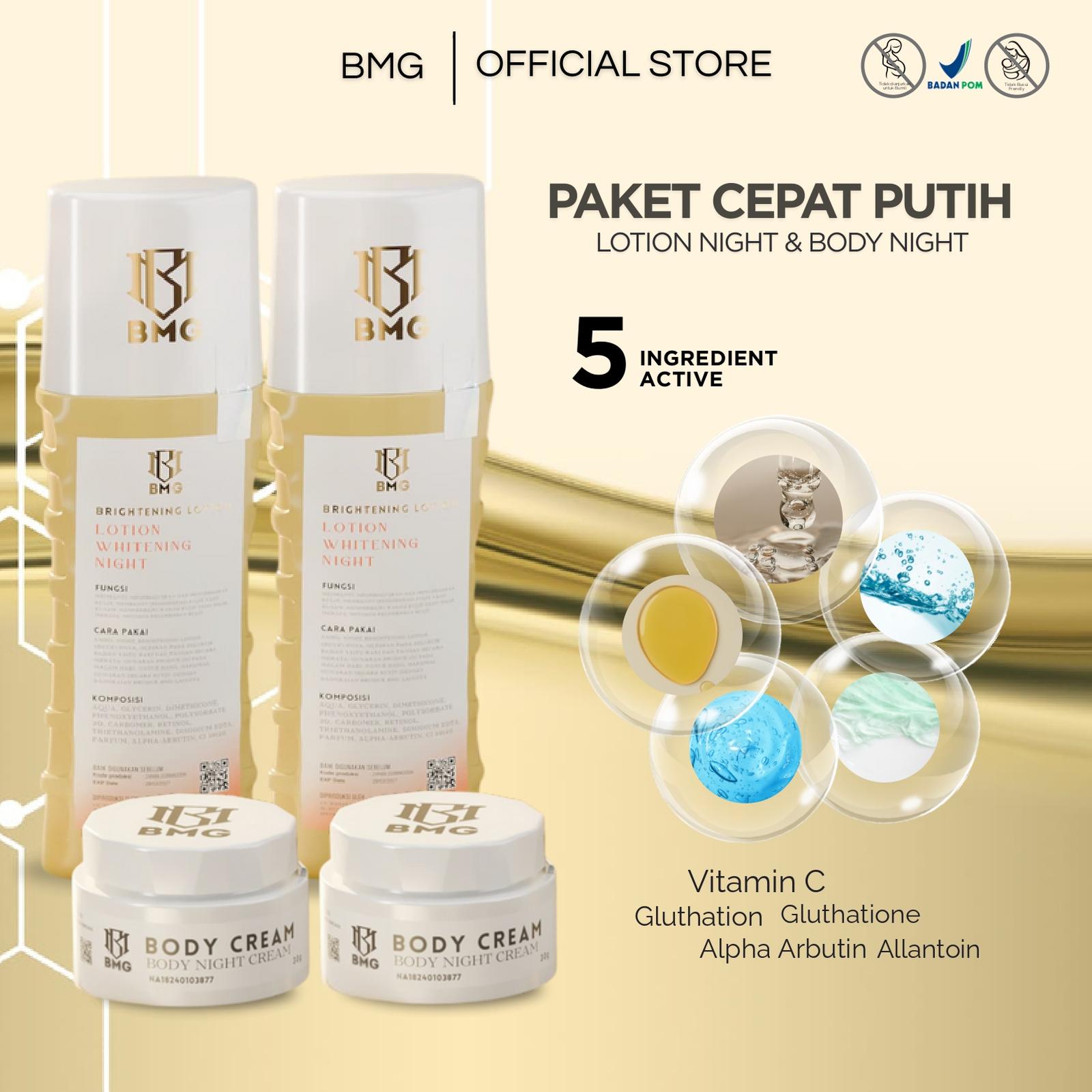 Dapatkan kombinasi perawatan malam yang powerful untuk atasi kulit kusam, kering, dan belang. Paket ini berisi 2 produk berkualitas dengan formula aktif yang sudah terdaftar BPOM, menjamin keamanan dan keefektifannya untuk mencerahkan dan melembutkan kulit tubuh Anda.