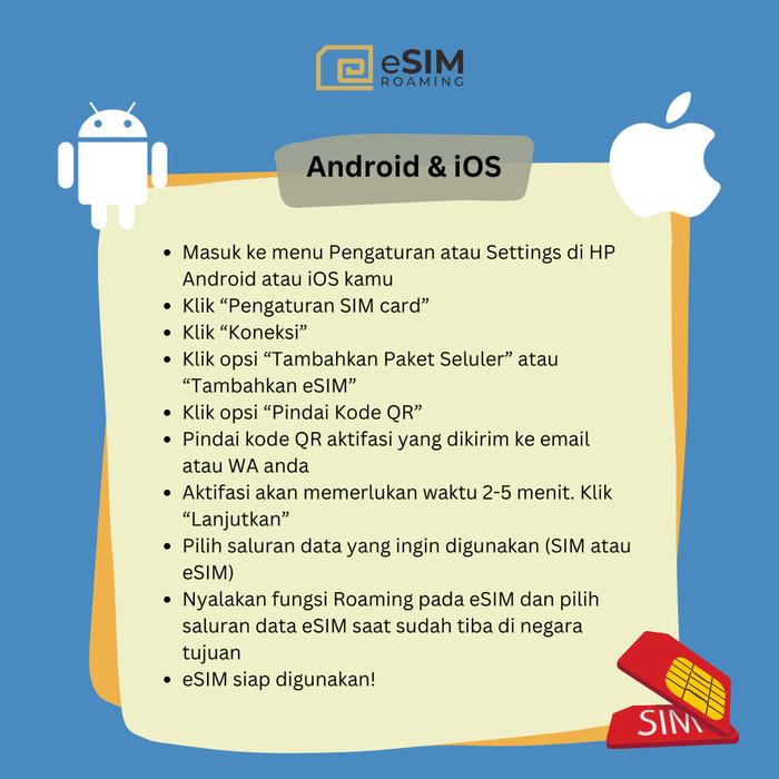 - Pastikan HP support eSIM (tidak bisa dibatalkan setelah dibeli).
