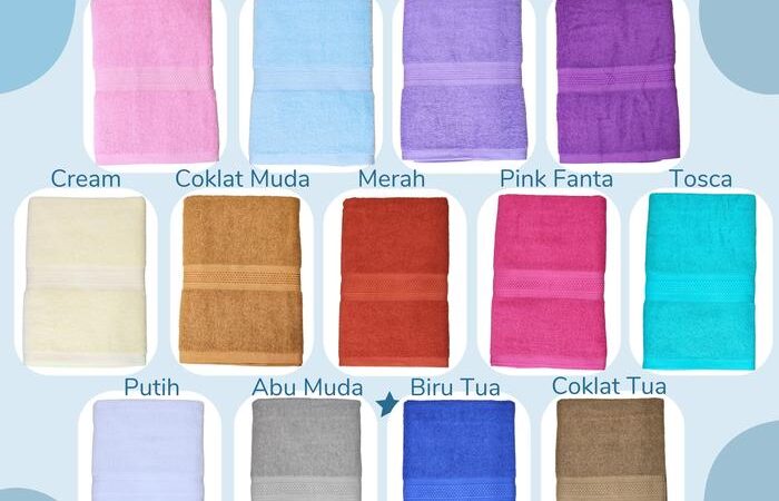 - Cotton Anti Bacteria: Jenis bahan katun yang telah diberi treatment khusus untuk mencegah pertumbuhan bakteri dan jamur, sehingga handuk tetap higienis, awet, dan bebas dari bau tidak sedap.