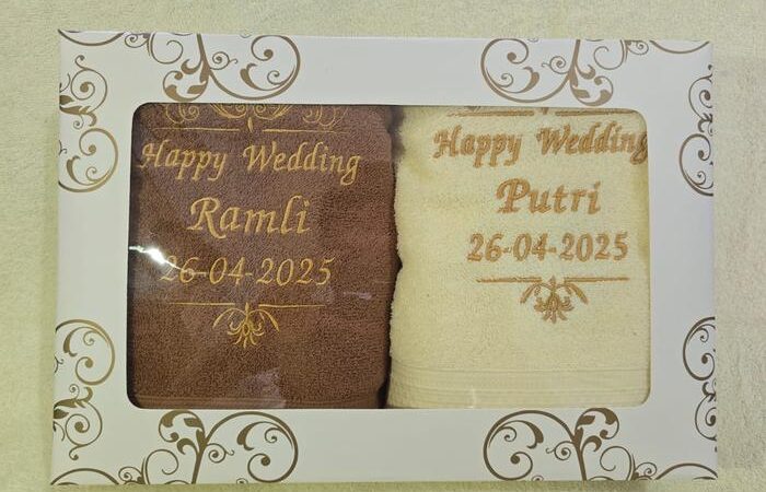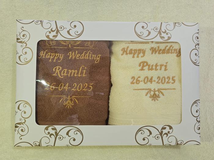 | Isi Paket | 2 buah handuk couple + bordir nama + kotak hadiah (opsional) |