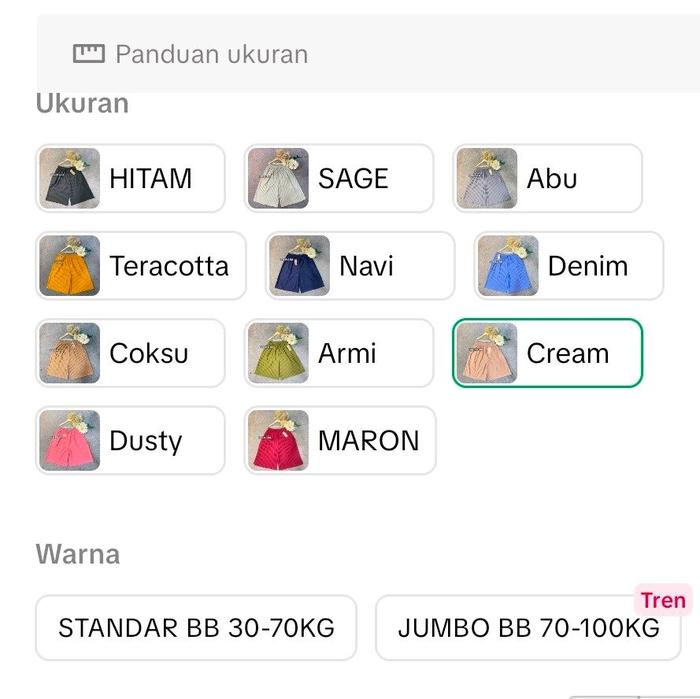 Catatan Penting: Tulis pilihan warna dan ukuran di kolom pesan. Jika stok warna pilihan habis, kami akan konfirmasi. Tanpa respons sebelum pukul 15:00, pengiriman akan dilakukan secara random. Pastikan ukuran yang dipilih sesuai untuk pengalaman berbelanja yang optimal.