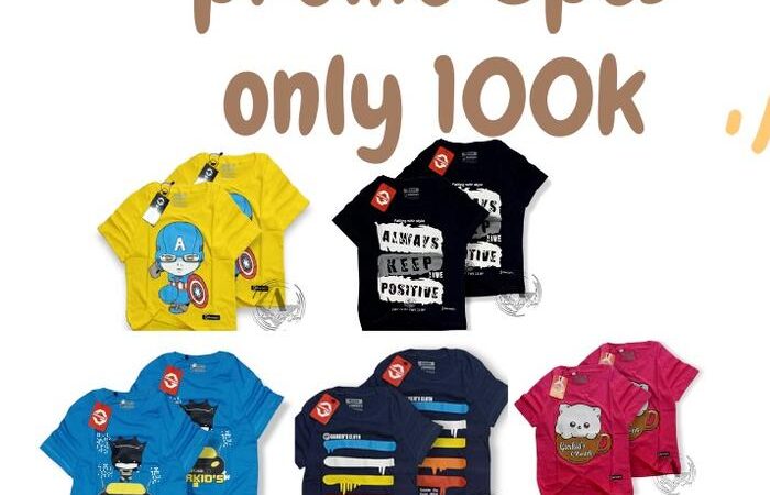 | Jumlah | 5pcs kaos distro anak (hanya Rp99.000/paket) |