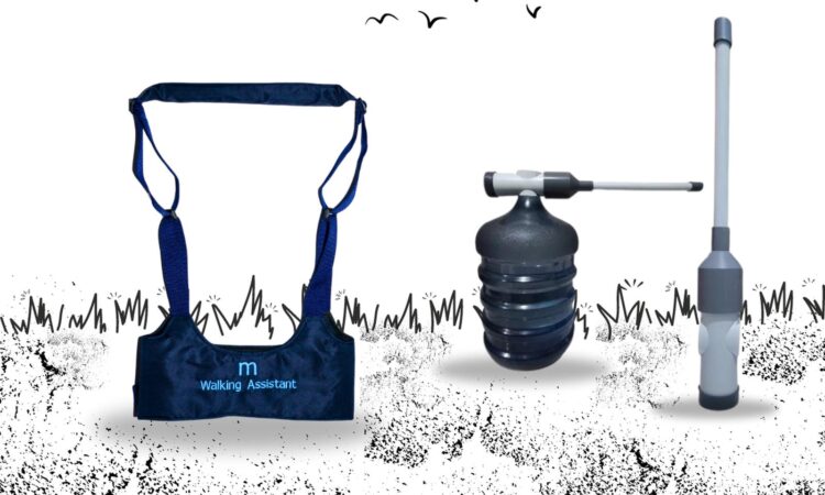- Walking Assistant: Alat bantu jalan berbentuk harness (tali pengait) dengan pegangan untuk orang tua. Alat ini dirancang untuk menopang dada dan badan bayi, memudahkan orang tua membimbing anak belajar jalan tanpa harus membungkuk dan mengurangi beban pada lengan bayi.