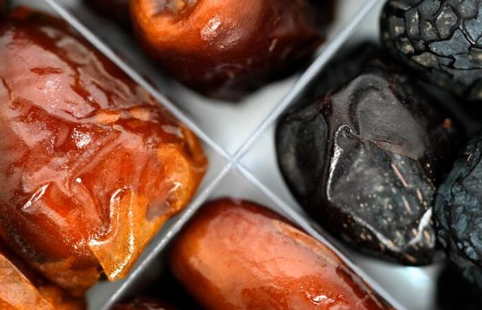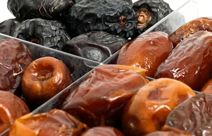 - Sugaring: Proses alami dimana gula dari dalam daging kurma keluar ke permukaan, membentuk kristal atau bintik putih. Ini bukanlah jamur atau tanda kerusakan, melainkan indikasi bahwa kurma tersebut alami dan bebas pengawet. Tekstur ini tidak mempengaruhi rasa atau kualitas dan tetap aman untuk dikonsumsi. Untuk menghilangkannya, cukup lap permukaan kurma atau bilas dengan sedikit air.