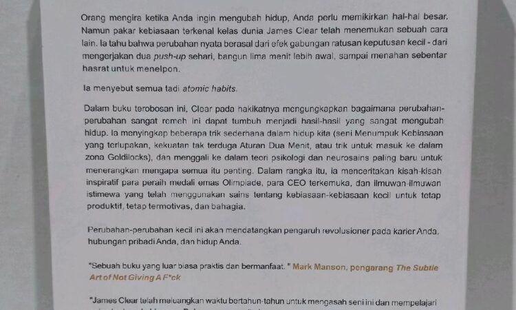 Atomic Habits: Metode sistematis membentuk kebiasaan produktif.