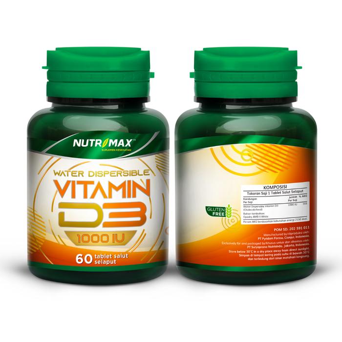 | Nutrimax Vitamin D3 (60 Tablet) | Suplemen Vitamin D3 dosis tinggi untuk membantu penyerapan kalsium, mendukung pembentukan tulang janin yang kuat, dan menjaga kesehatan imunitas ibu. | Vitamin D3 1000 IU per tablet | 1 tablet sehari, sesudah makan. |